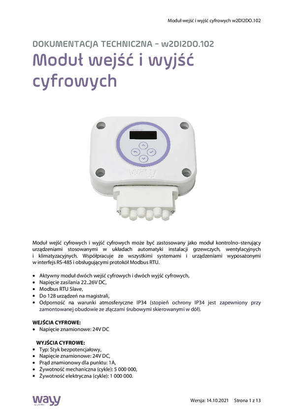 Moduł wejść i wyjść cyfrowych w2DI2DO
