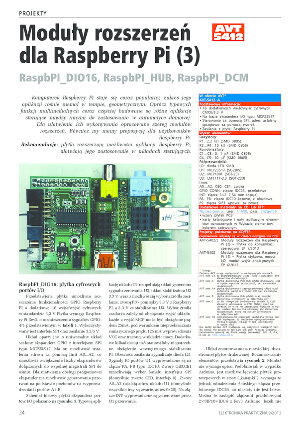 AVT5412 A Moduł rozszerzeń dla Raspberry Pi. Płytka cyfrowych portów I/O - płytka drukowana