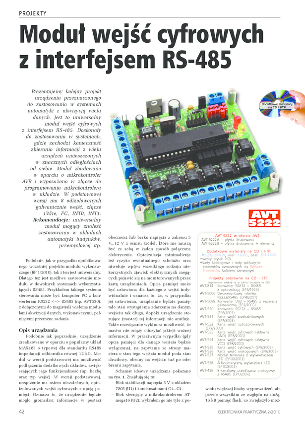 AVT5222 Moduł wejść cyfrowych z interfejsem RS485