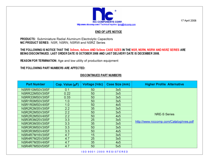 Cap Aluminum 330uF 2.5V 20% (5 X 5.9mm) Cylindrical 3150mA 2000hr 105°C T/R