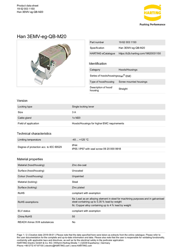 Obudowa gwintowana Harting 19 62 003 1150, odlew cynkowy, 1 szt.