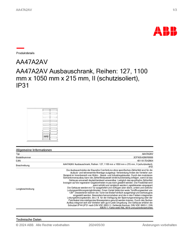 Striebel & John 2CPX054296R9999 AA47A2AV Szafka rozdzielcza podtynkowy, nadtynkowy, częściowo wpuszczony Content 1 szt.
