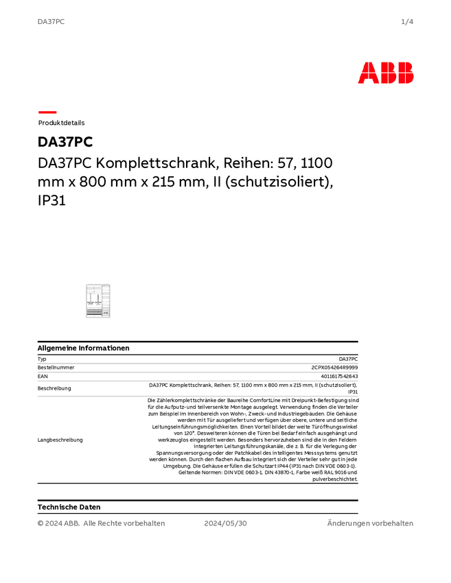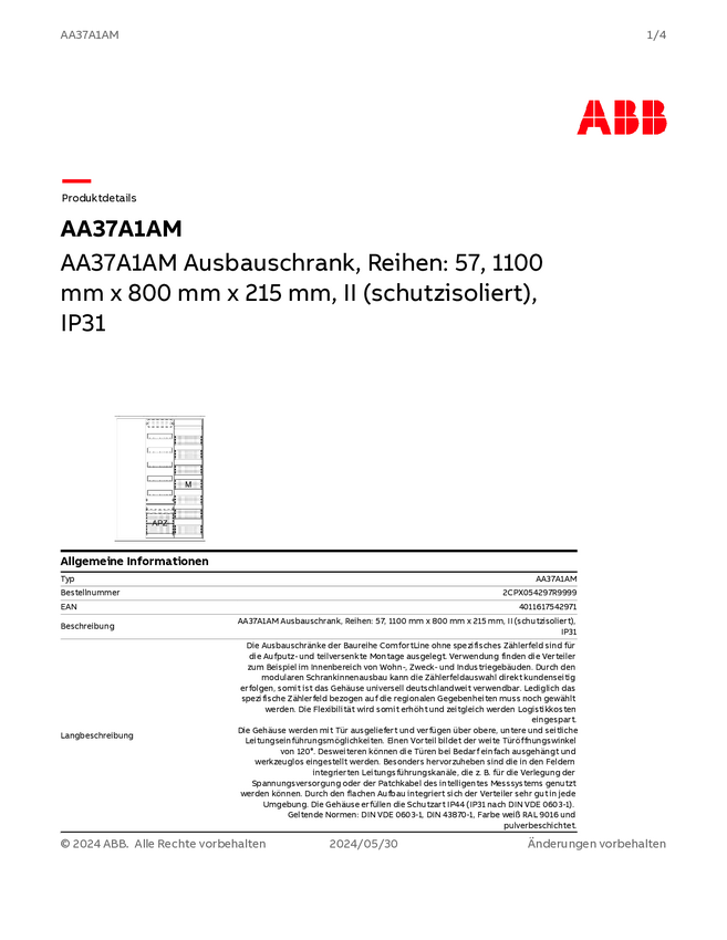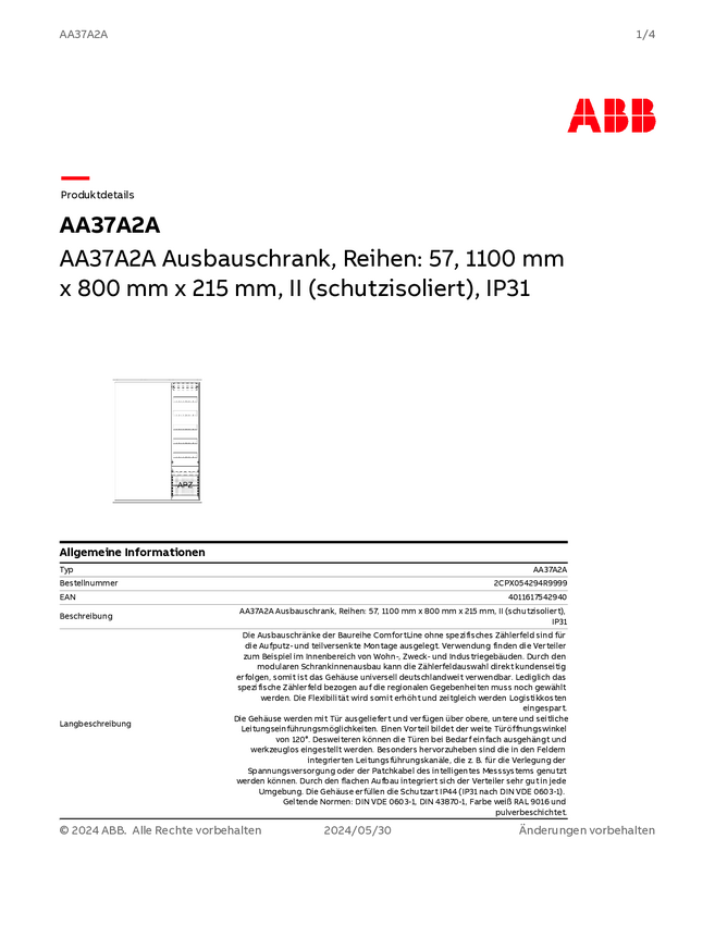 Striebel & John 2CPX054297R9999 AA37A1AM Szafka rozdzielcza podtynkowy, nadtynkowy, częściowo wpuszczony Content 1 szt.