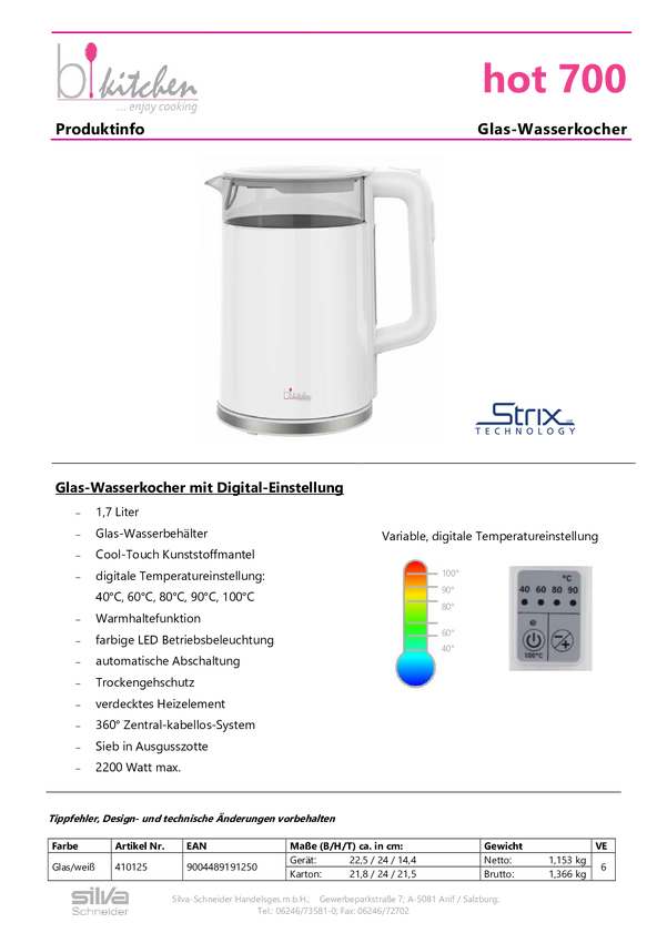 BiKitchen Hot 700 Czajnik biały Pojemność: 1.7 l