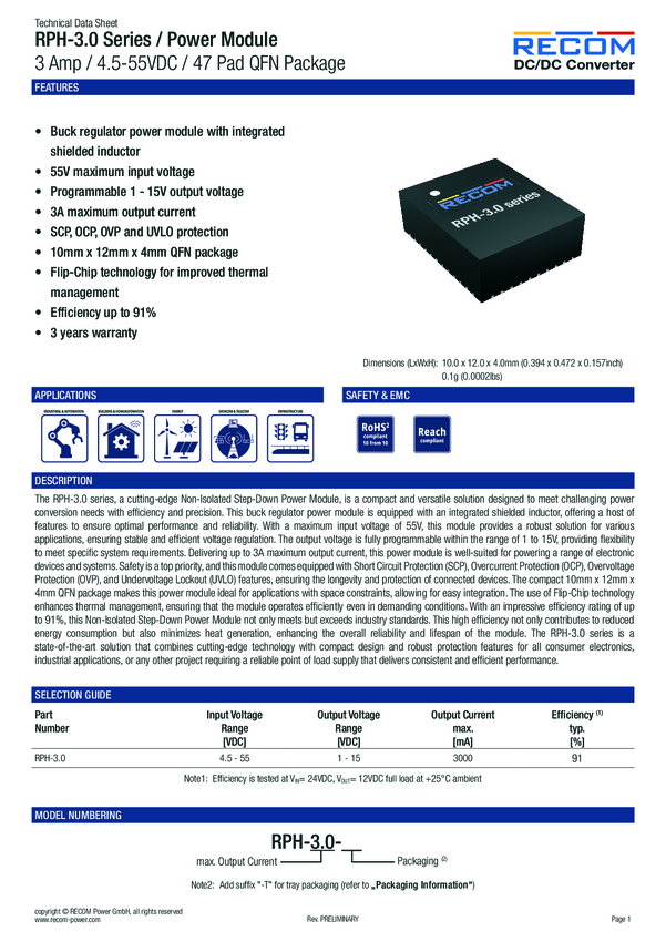 Regulator napięcia - regulator przełączany DC/DC RECOM N/A