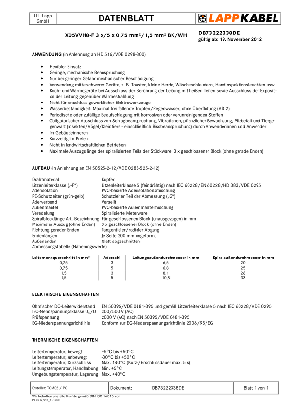LAPP;73222341;Przewód spiralny;X05VVH8-F300 mm/ 900 mm;5 G 0.75 mm²;czarny1 szt.