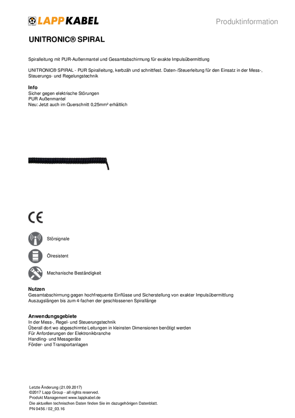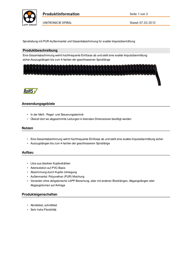 LAPP;73220226;Przewód spiralny;UNITRONIC® SPIRAL200 mm/ 800 mm;7 x 0.14 mm²;czarny1 szt.