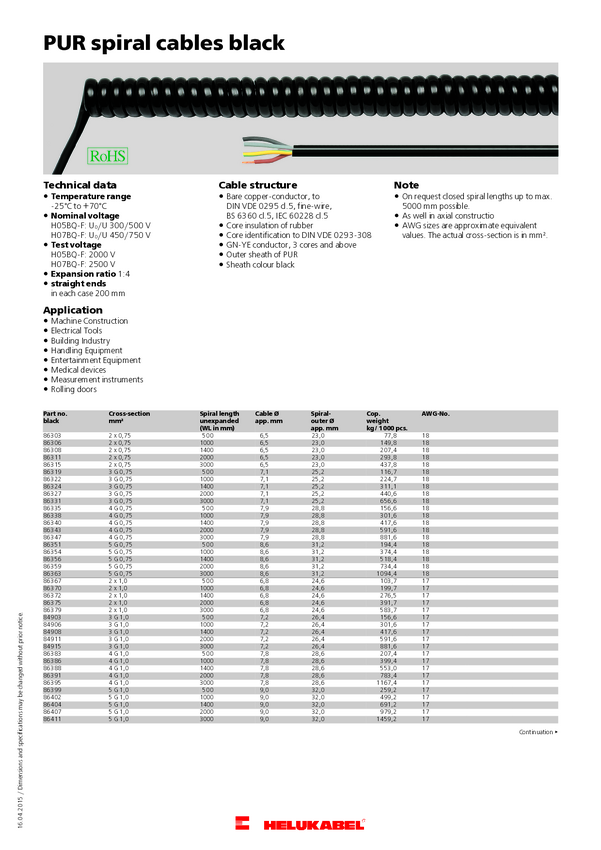 Helukabel;84927;Przewód spiralny;H07BQ-F2000 mm/ 8000 mm;3 G 1.50 mm²;czarny1 szt.