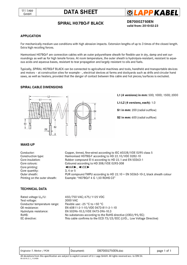 LAPP;70002756;Przewód spiralny;SPIRAL H07BQ-F1500 mm/ 4500 mm;4 G 1.50 mm²;czarny1 szt.