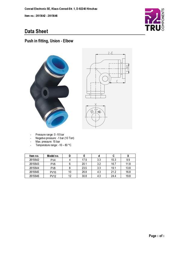 TRU COMPONENTS Złączka kątowa PV8 Średnica rury: 8 mm 1 szt.