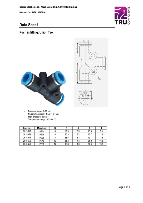 TRU COMPONENTS Złączka T PE4 Średnica rury: 4 mm 1 szt.