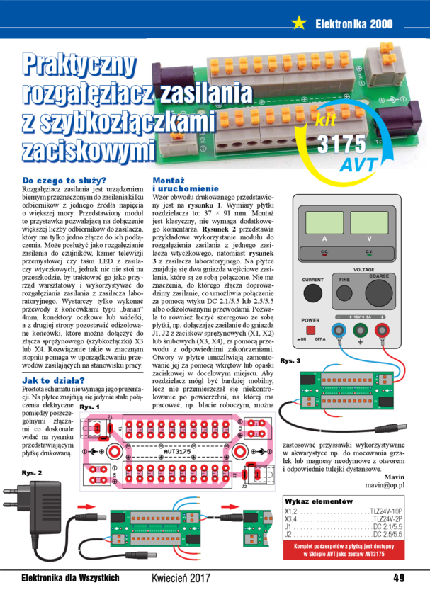 AVT3175 Praktyczny rozgałęziacz zasilania z szybkozłączkami zaciskowymi
