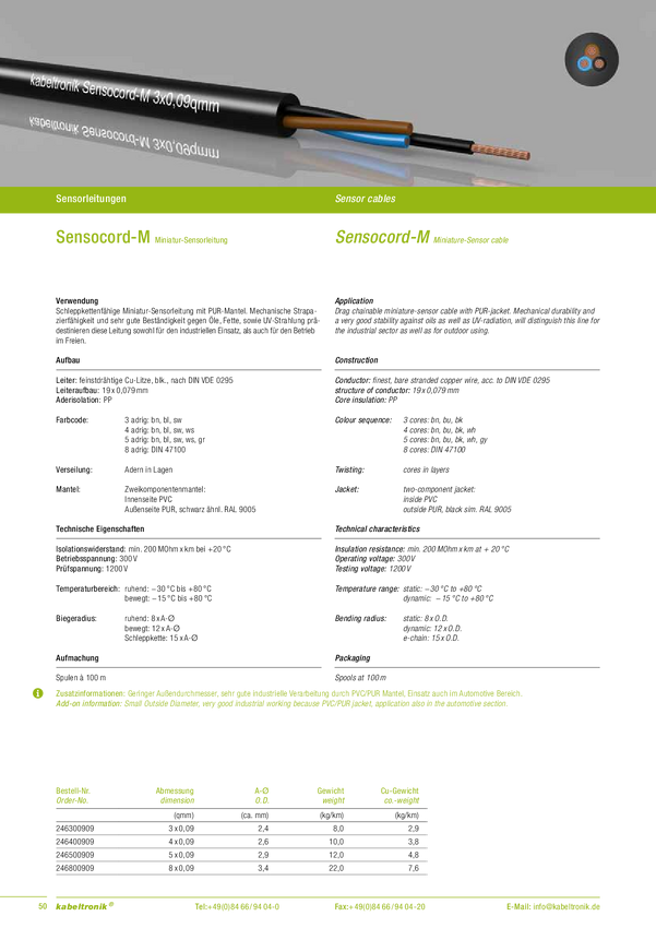 Kabeltronik 242030800-1 Przewód czujnikowy Sensocord® 3 x 0.09 mm² czarny Produkty w metrach bieżących