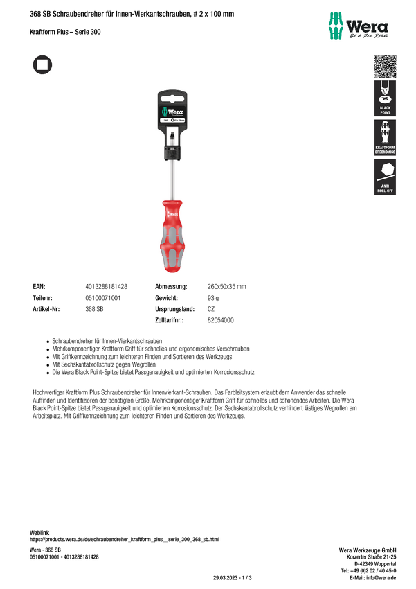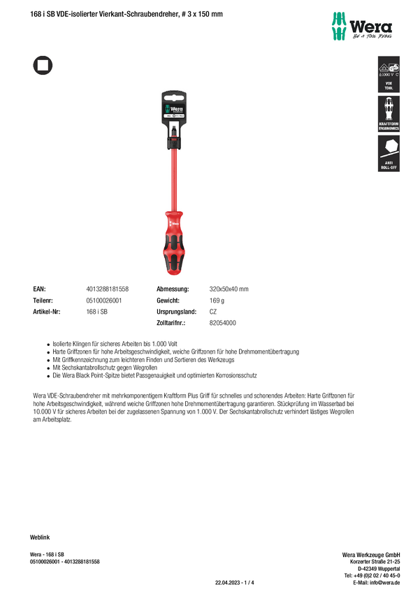 Wkrętak czworokątny Wera 168i 05100025001 1 szt.