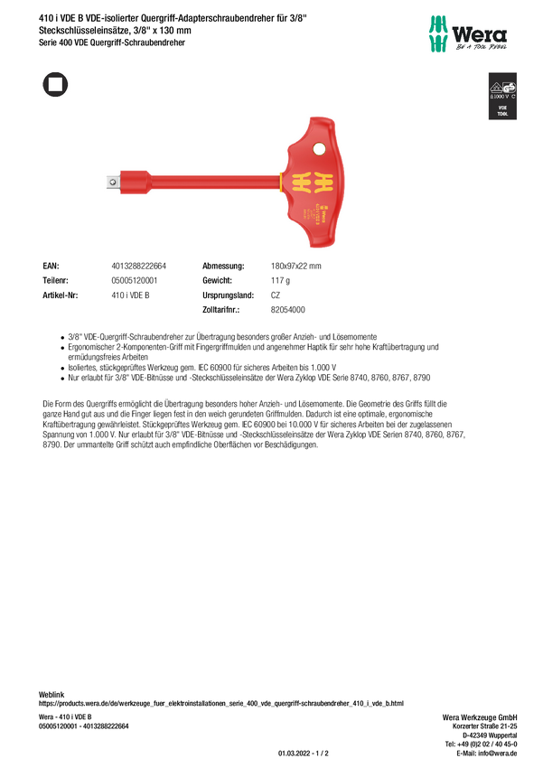 Wkrętak czworokątny Wera 410 i VDE B 05005120001
