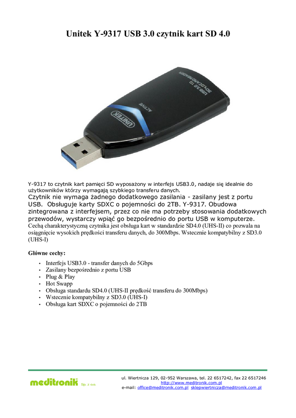 Unitek Y-9313 USB 3.0 czytnik kart All in One,