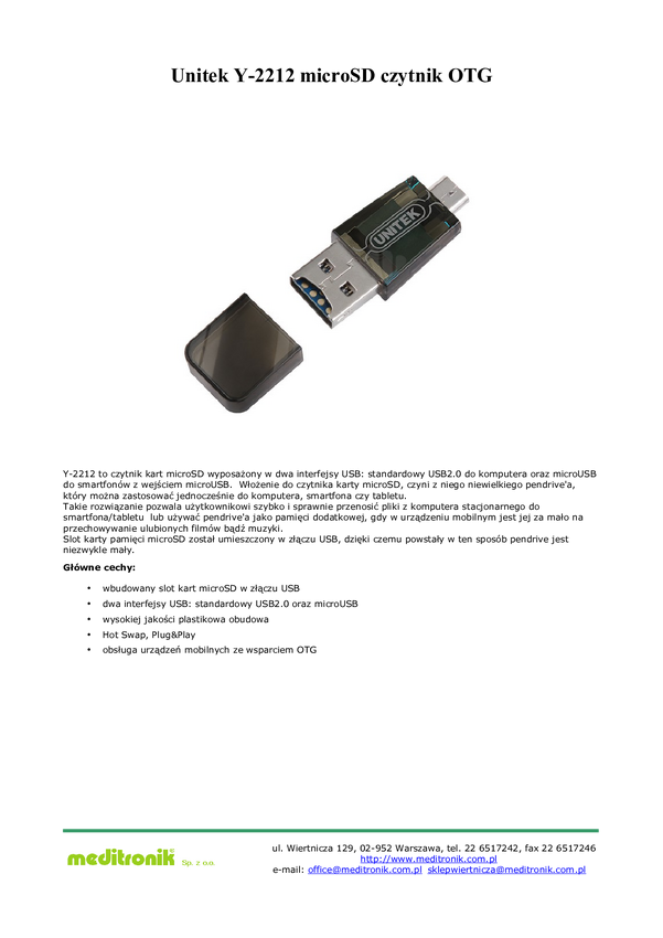Unitek Y-3048A czytnik kart SD + hub 3xUSB 3.0,