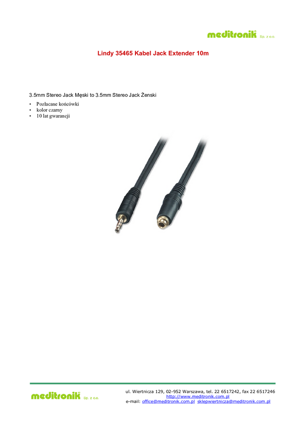 Kabel audio Jack 3,5mm wtyk/gniazdo długość 10m