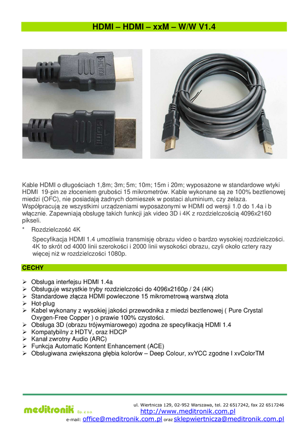 Kabel HDMI HDLink v1.4 pozłacane końcówki, długość 10m