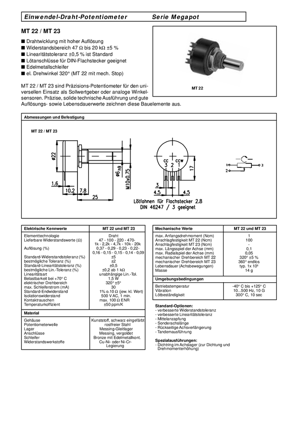 potencjometr drutowy, bushing; lin.0,5% 1 obrotowy; średnica=7/8"=22mm; długość=10,2mm; ośka=6mm trwałość= 1 mln.obr.; moc= 1,5W; 320 stopni ze stopem