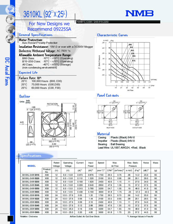 Wentylator 92x92x25mm; 41dBA; łóżysko kulkowe; 1,55m3/min 2 przewody; I=0,16A; U zas. 10-25V DC; P=3,84W; 3200RPM;