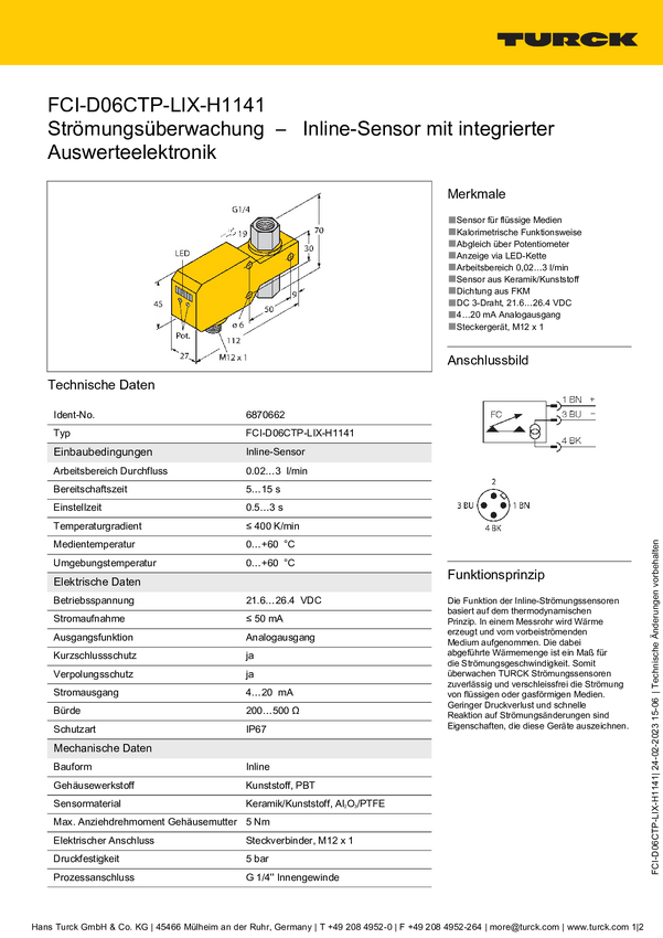 Turck Czujnik liniowy FCI-D06CTP-LIX-H1141 6870662 Zasilanie (zakres): 21.6 - 26.4 V/DC 1 szt.