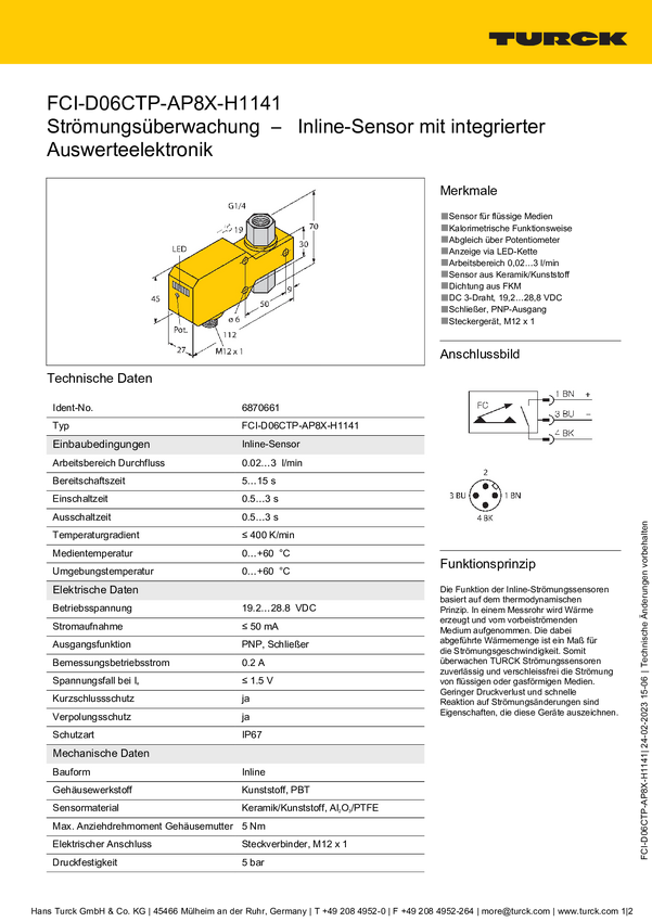 Turck Czujnik liniowy FCI-D06CTP-AP8X-H1141 6870661 Zasilanie (zakres): 19.2 - 28.8 V/DC 1 szt.