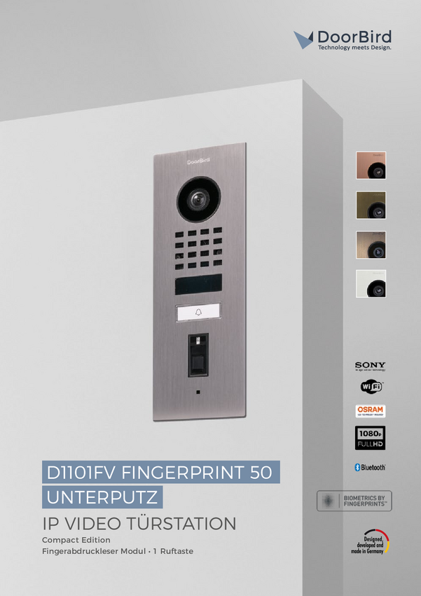 DoorBird D1101FV FP50 UP Domofon Bluetooth®, WLAN, LAN Jednostka zewnętrzna grafitowy-czarny (pół-połysk)