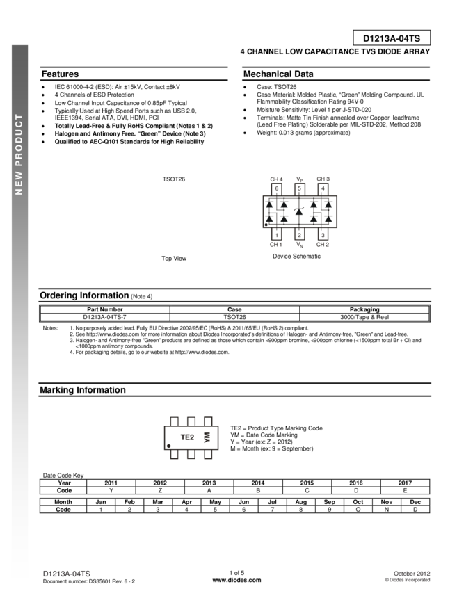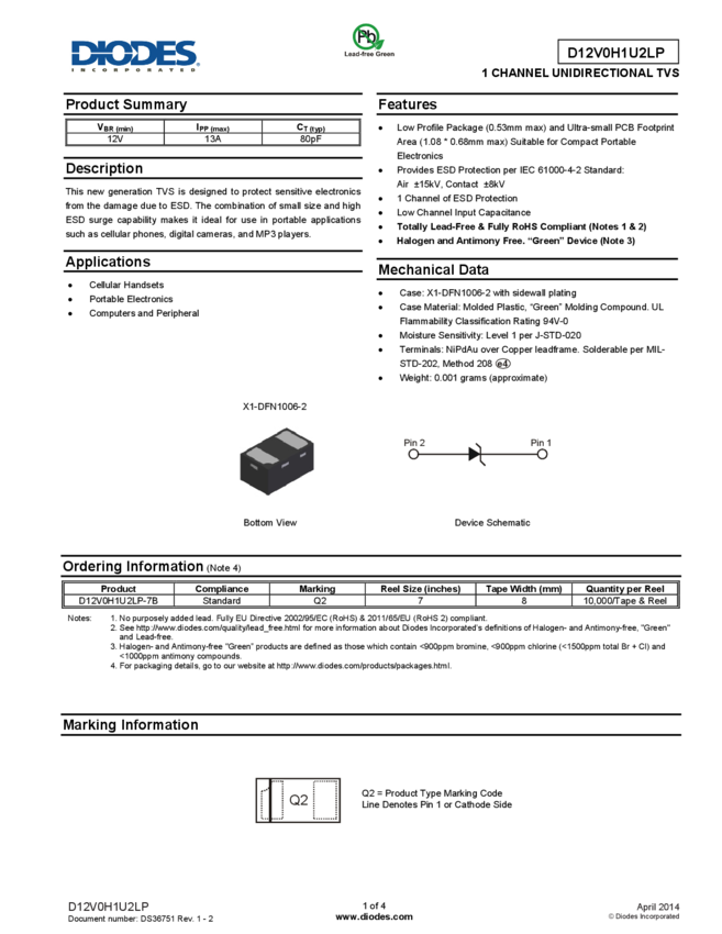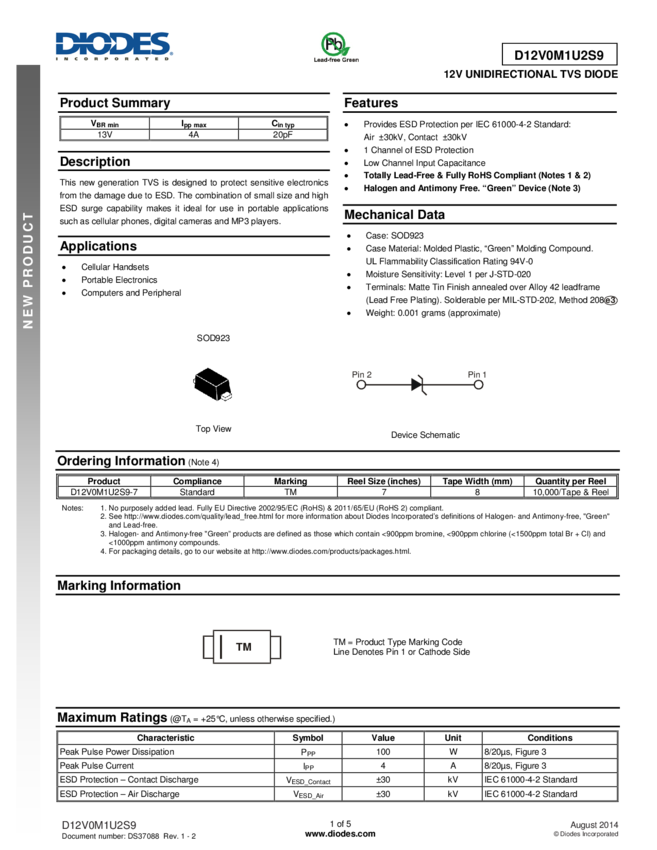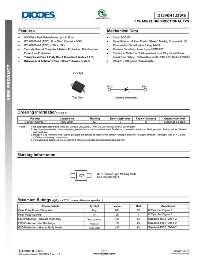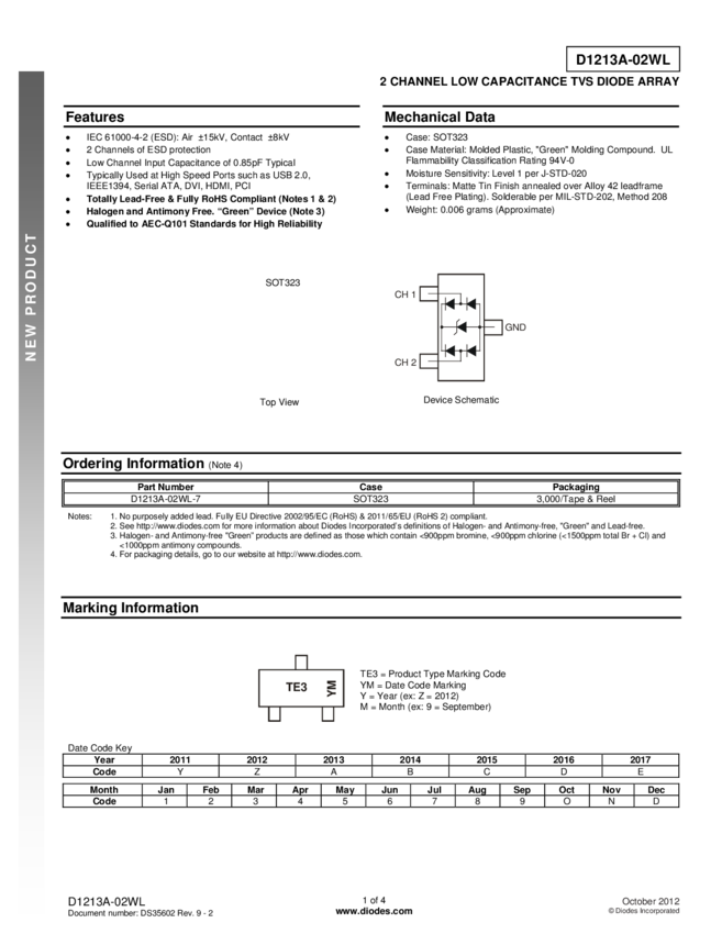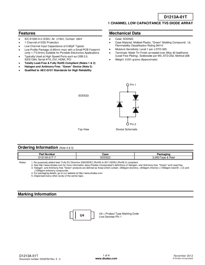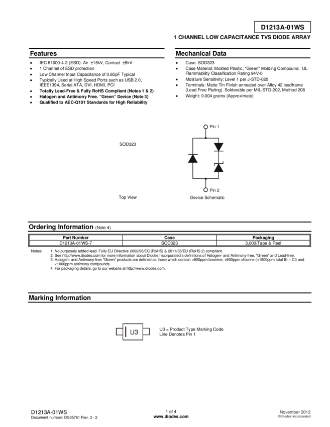1 CHANNEL LOW CAPACITANCE TVS DIODE ARRAY