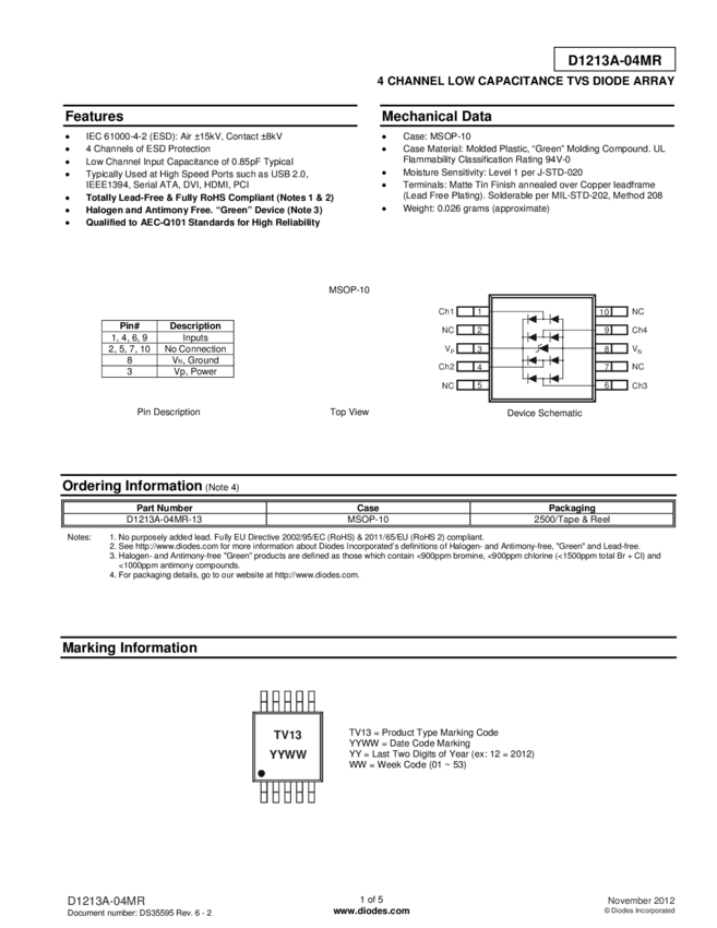 4 CHANNEL LOW CAPACITANCE TVS DIODE ARRAY