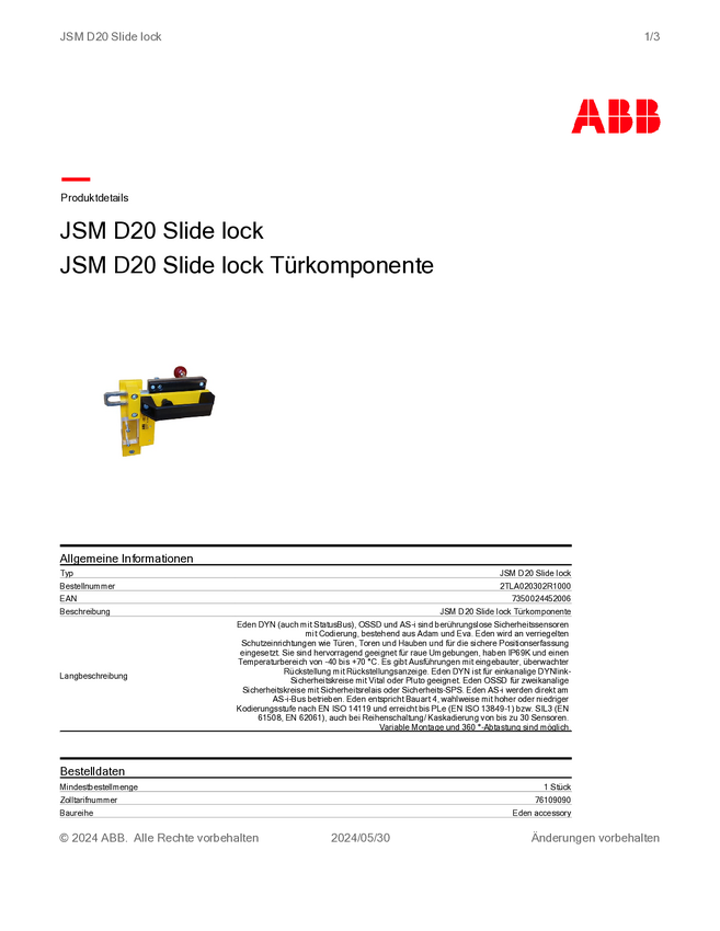 ABB 2TLA020302R1000 Śruba przesuwna JSM D20 1 szt.