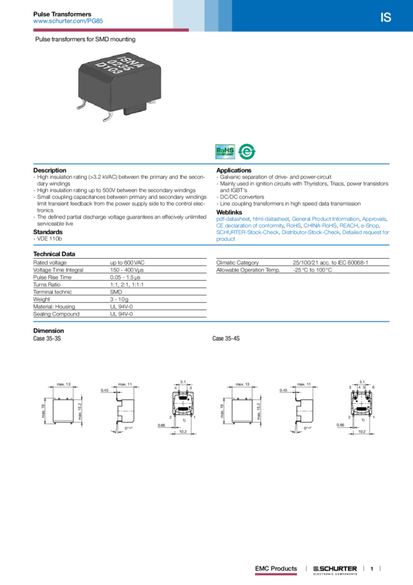 ISRA PULSE TRANSFORMER SMD 0.1A