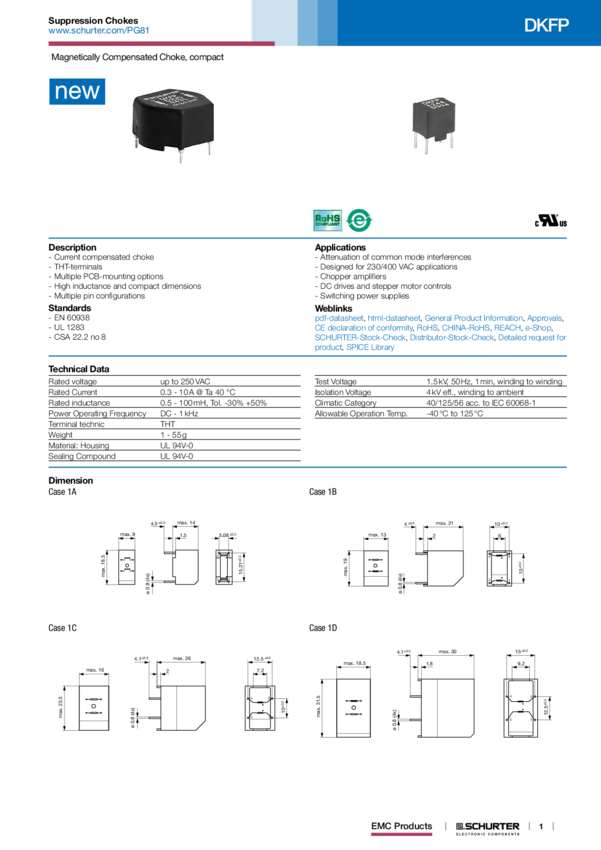 Choke, Magnetically Compensated, Compact, DKFP Series, 1.8mH, 1E Case
