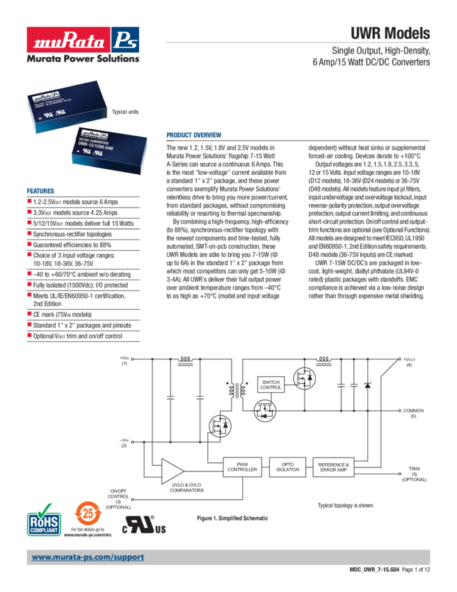 Module DC-DC 1-OUT 12V 1.25A 15W 6-Pin Case C-14