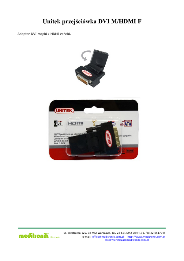 Adapter DVI-D24 wtyk na gniazdo HDMI