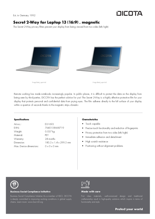 Filtr prywatyzujący Dicota D31693 do notebooków 33 cm (13 cali)