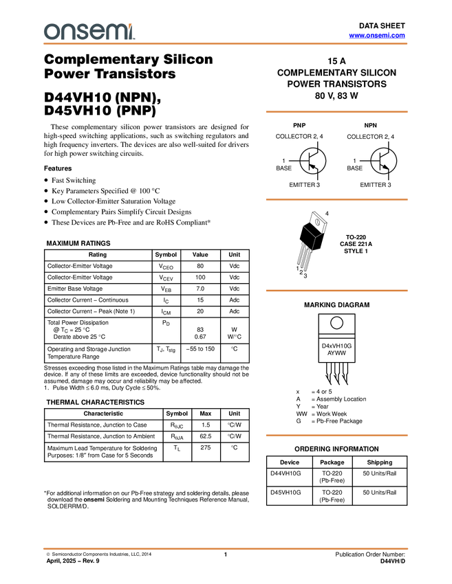 80V/`0A/Vce(sat) = 1.0V Bipolar NPN Switching Power Transistor