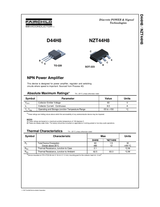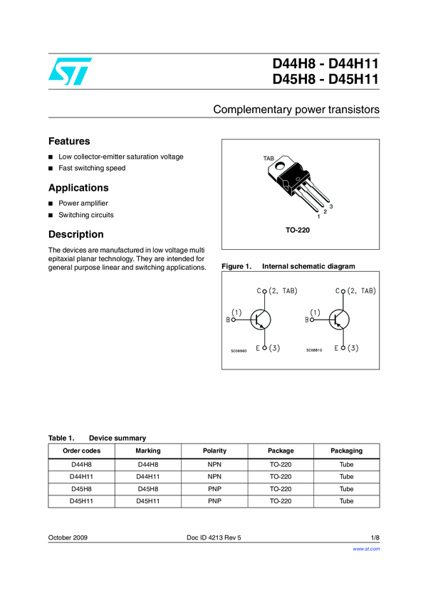 STMicroelectronics D44H8 Tranzystor (BJT) - dykretny 1 szt.