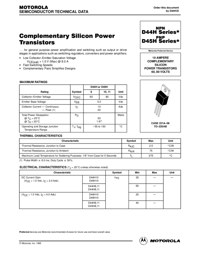 80V/10A/Vce(sat) = 1.0V Bipolar PNP Power Switching Transistor