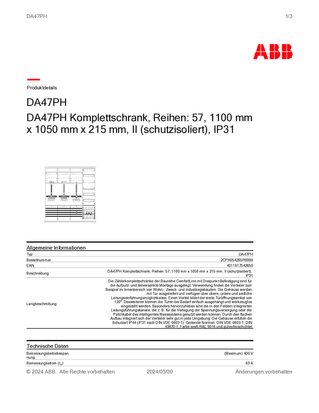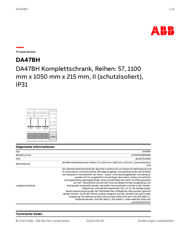 Kompletna obudowa Striebel & John DA47BH 2CPX054258R9999, 1050 mm x 1100 mm x 215 mm, 1 szt.