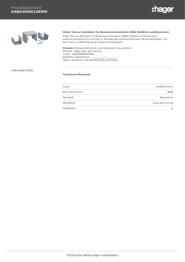 Zestaw uchwytów Hager DABA50080109006 1 szt.