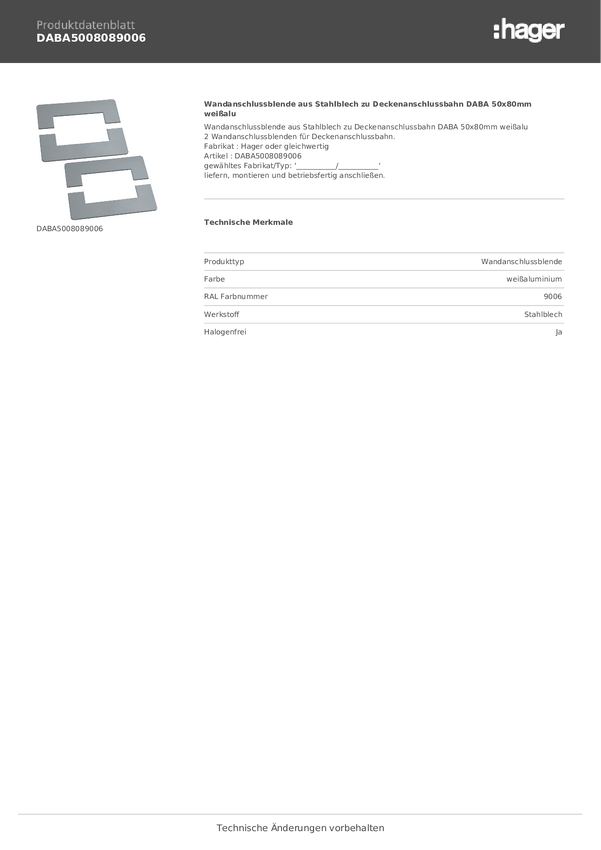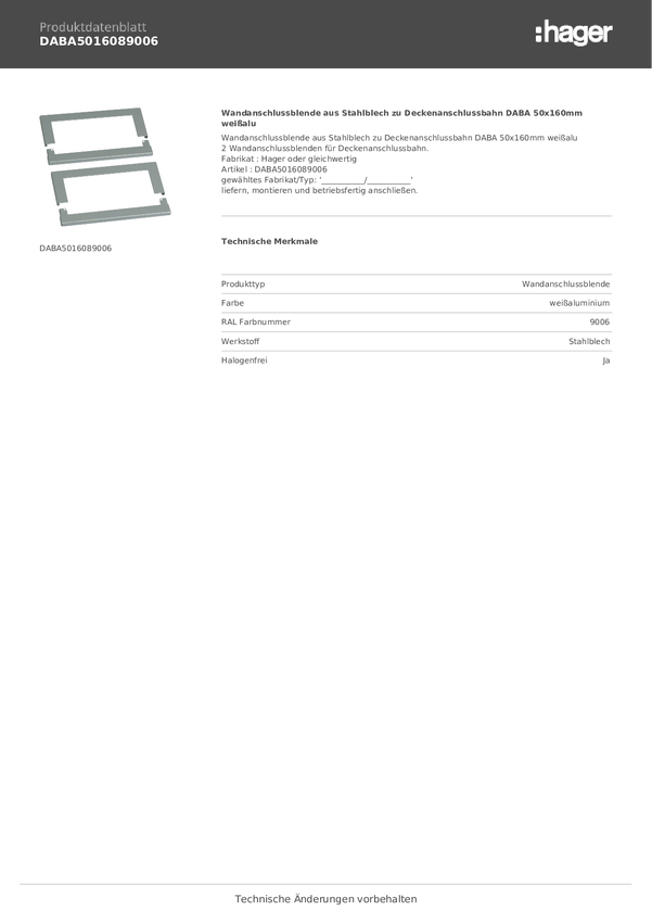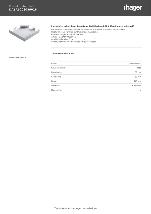 Kątownik płaski Hager DABA5016059016 1 szt.