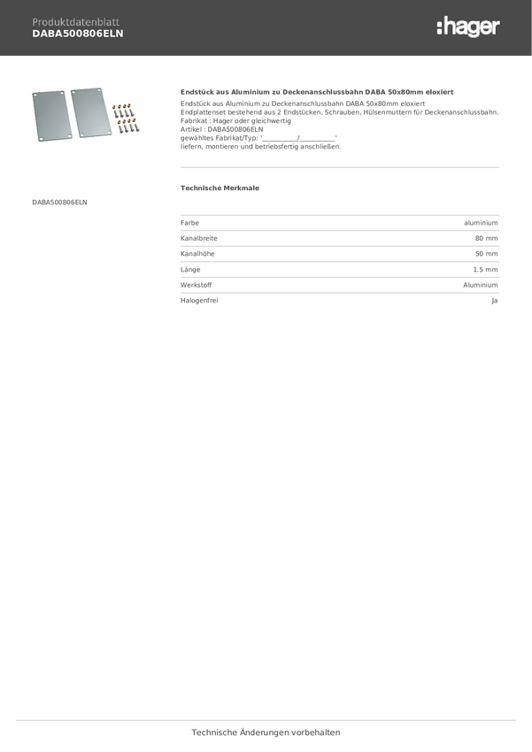 Kątownik płaski Hager DABA5008059016 1 szt.