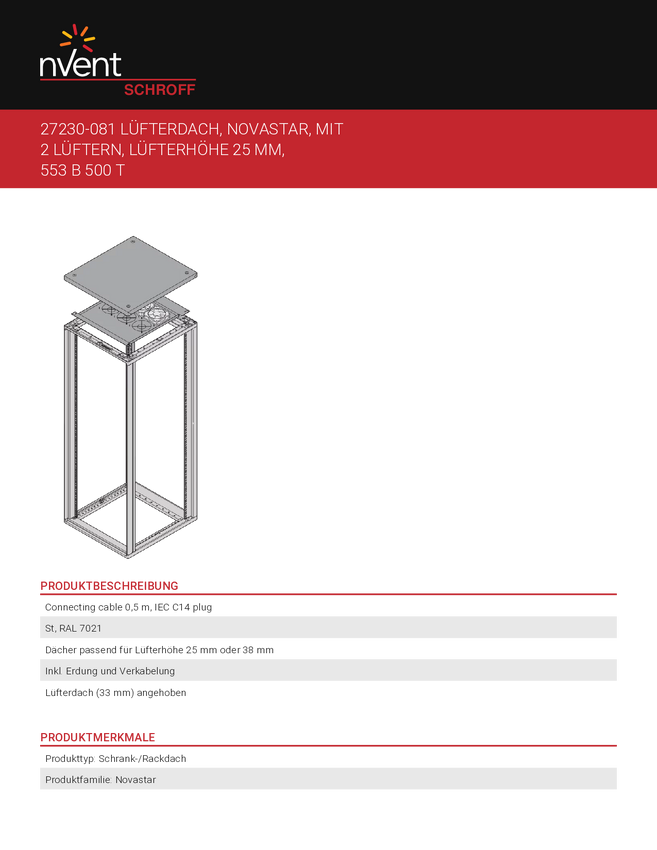 nVent SCHROFF 27230083 Dach wentylatora 1 szt.
