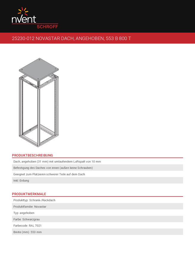 Dach nVent SCHROFF 25230012 25230012, 1 szt.