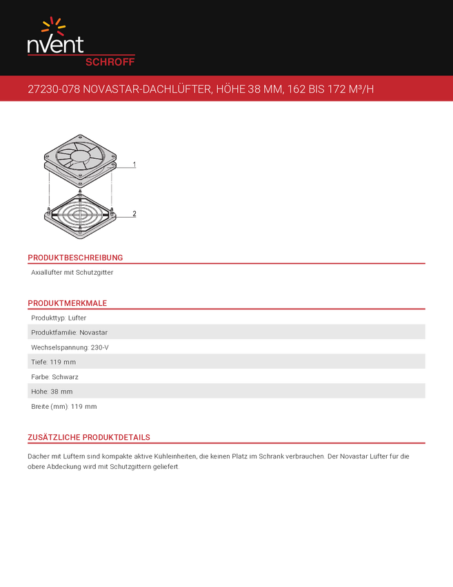 Wentylator dachowy nVent SCHROFF 27230077 27230077, 1 szt.