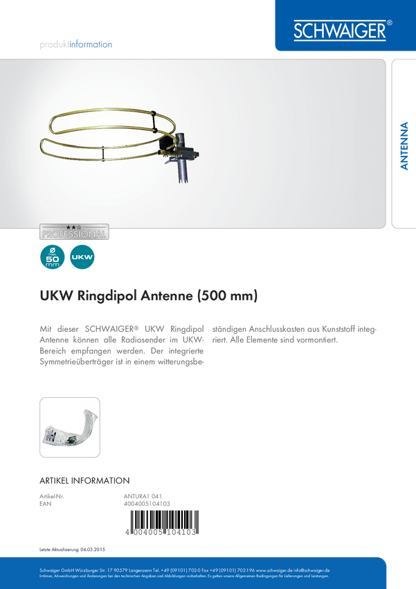 Schwaiger ANTURA1041 Antena dachowa UKF