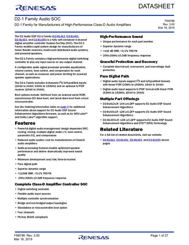 DAE-1 for Manufacturers of High-Performance Class-D Audio Amplifiers for Use with D2Audio X-Series Reference Designs