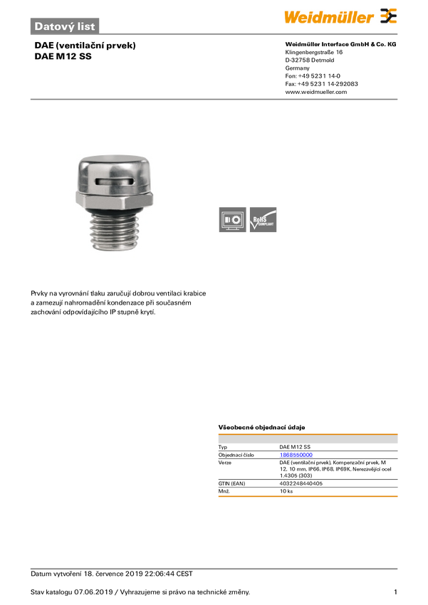 Weidmüller 1868550000-10 DAE M12 SS M12 stal nierdzewna stali szlachetnej 10 szt.