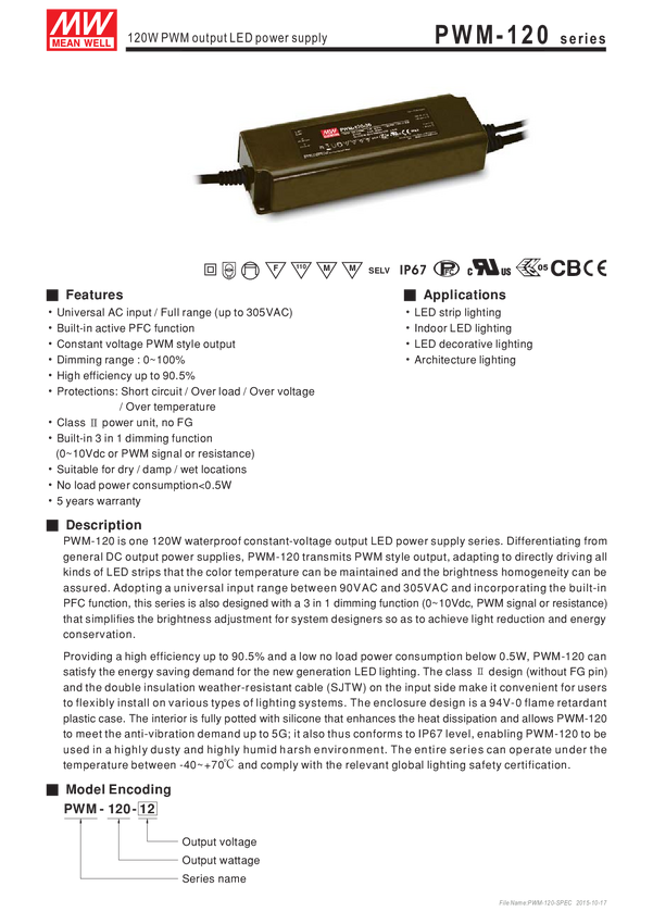 Zasilacz z interfejsem DALI do oświetlenia LED 36V 3,4A 90W Mean Well PWM-120-36